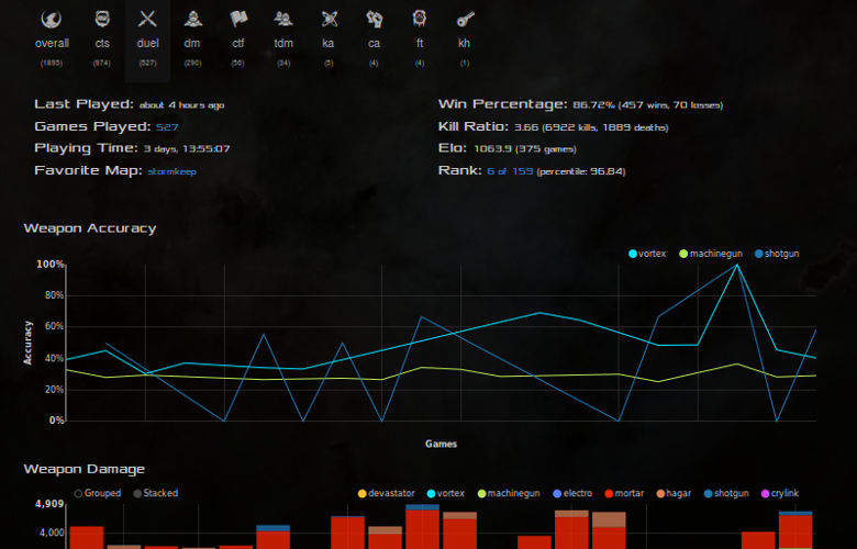 Track your progress with XonStat, the integrated player statistics